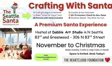 Did you know we can bring Crafting items to your place for a fun night or special event too? Check in with Santa Dan at TheSeattleSanta@Gmail.com and lets plan a crating event together.
